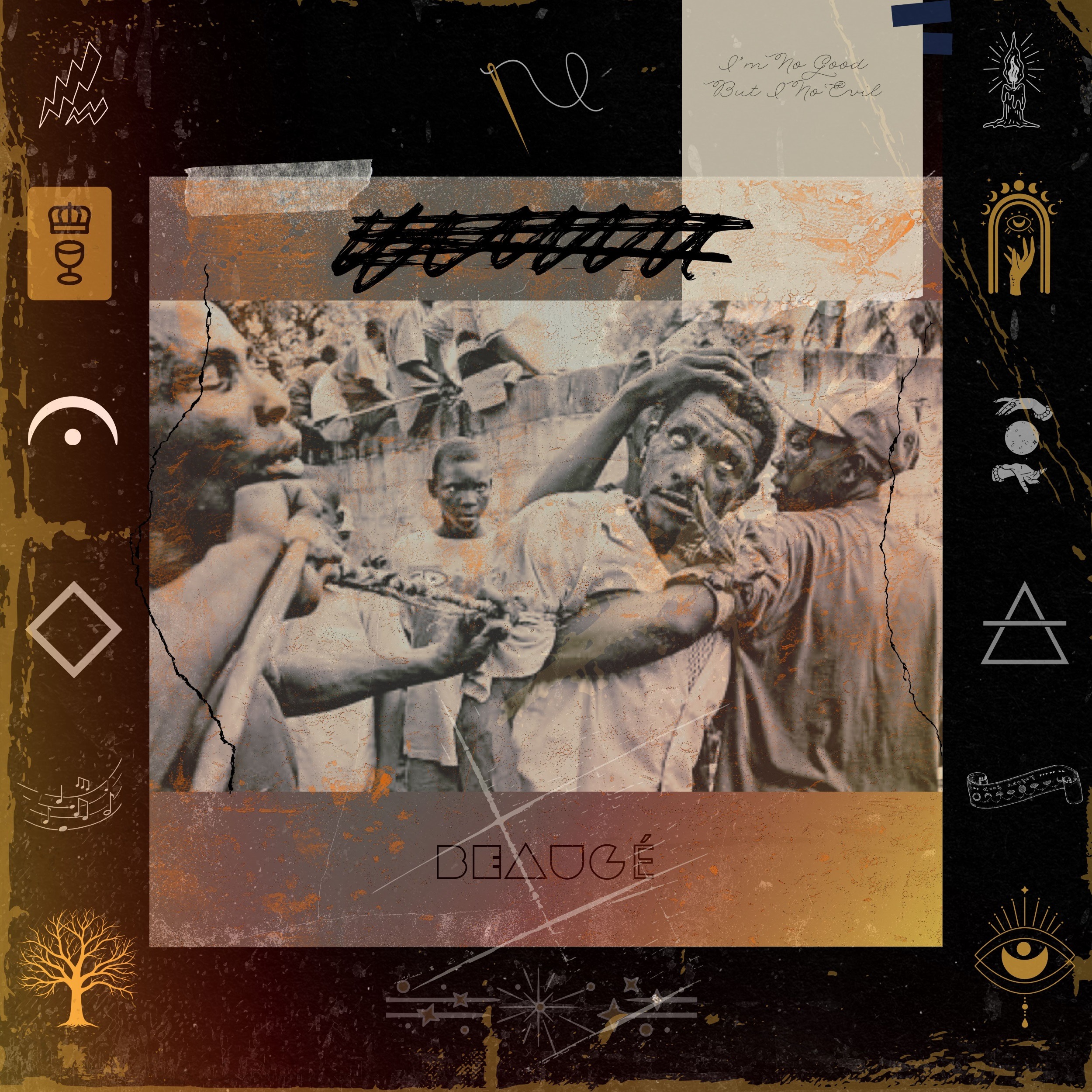 Les mots claquent : « I’m No Good But I No Evil ». Une formule frappante, qui refuse l’innocence passive. Ici, la connaissance est un point de non-retour. Une fois la conscience éveillée, rester inerte devient un choix — et donc une faute. Beaugé convoque les forces spirituelles de ses racines ayitiennes pour rappeler que l’histoire se fait aussi au présent, à travers nos actes et nos silences.