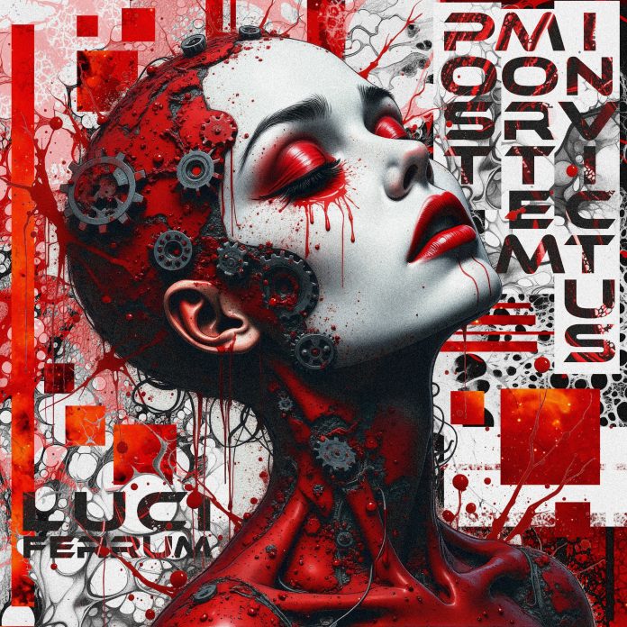 Musicalement, Post Mortem Invictus se distingue par son architecture précise : rythmiques industrielles abrasives, textures électroniques sombres, respirations trip-hop et ruptures de tempo soigneusement placées. La voix de Luci Ferrum évolue constamment, du murmure résigné à une tension presque triomphante, révélant un travail obsessionnel sur l’émotion brute.